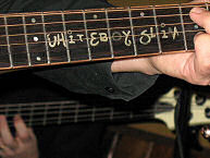 David Krindle of Winnipeg. Dave has a day job as a potter. He plays Timeless' left-handed guitar in a regular group in the city. It has the symbol for Human Rights inlaid on the headstock. If you stop by his studio, he might have a CD - but for sure a bowl or cup! Check out his really interesting video profile!