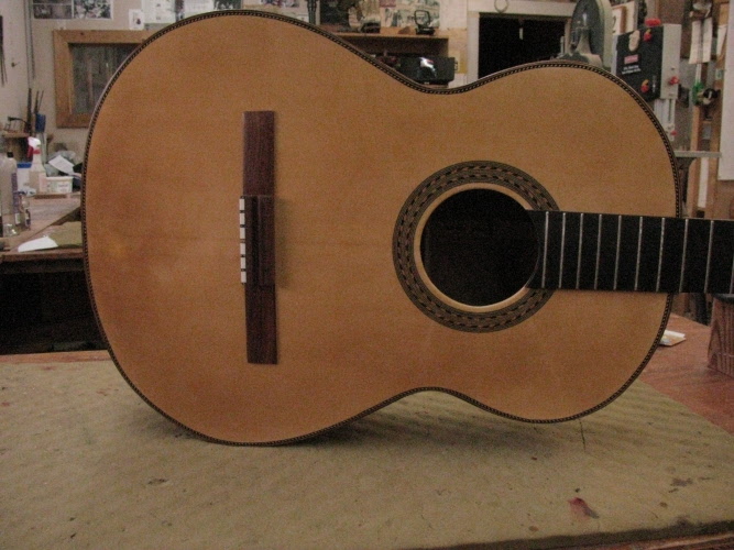 top ;sitka Spruce Back & sides; Friejo 3 pce Back Neck; Canadian cypress ( Yellow Cedar) Fingerboard;Zircote, Birdge; jarraBinding; zebra wood. Sloane tuners